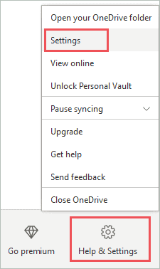 Open OneDrive settings