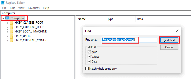 search for RemovableStorageDevices in registry editor
